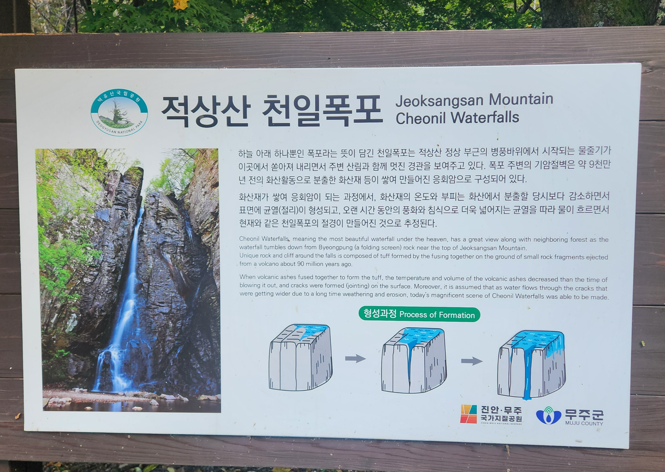 '적상산 사고(史庫)'를 보고 하산하는 길이었다. 우리는 "오는 길에 볼 수 있는 건 다 보자"는 마음으로, 길가에 보이는 '적상폭포' 안내판을 따랐다.